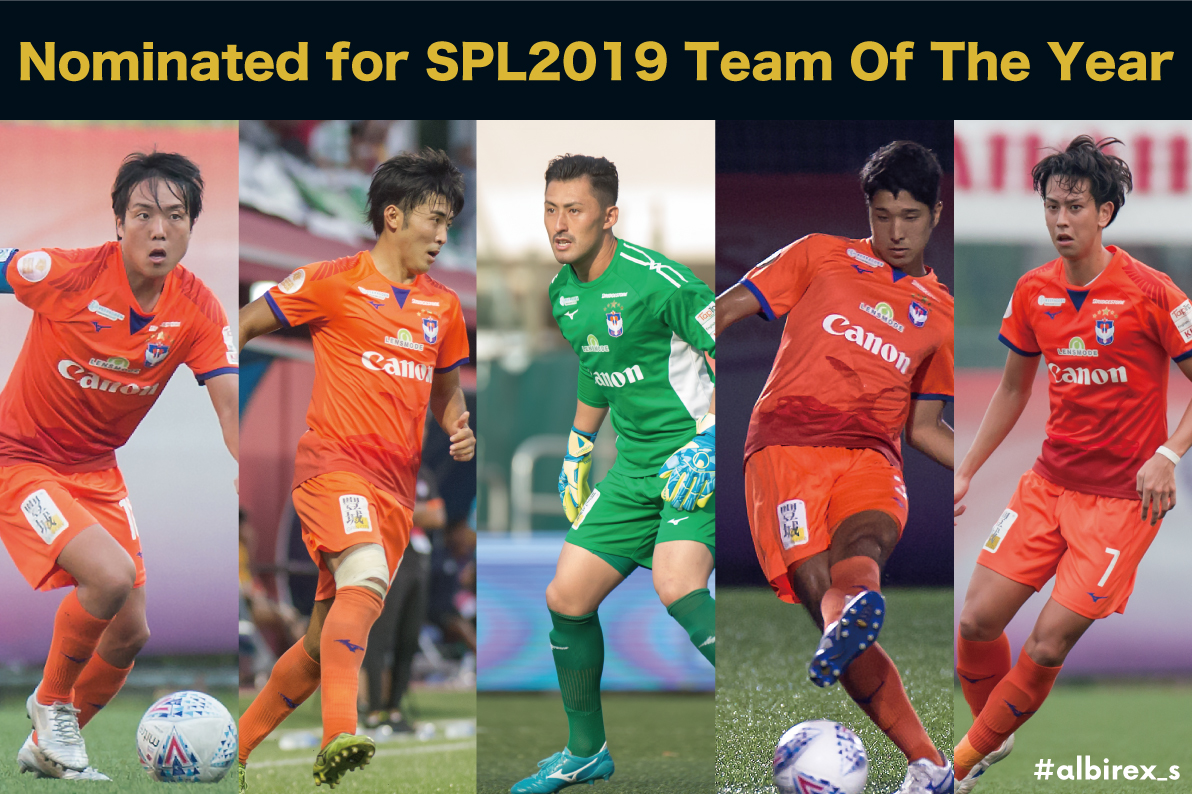 AIA Singapore Premier League が実施するSPL2019年間アワードのベストイレブンに、当クラブ所属の福留健吾選手、笹原脩平選手、山﨑海秀選手、堀越大蔵選手、仲村京雅選手がノミネートされましたので、お知らせいたします。