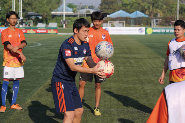 午前中は、デフサッカーのミャンマー代表の選手たちです。彼らは代表チームとして普段から一緒にトレーニングをしているわけではありませんが、同じ学校出身の仲間も多く顔見知りでコンビネーションも問題ありません。