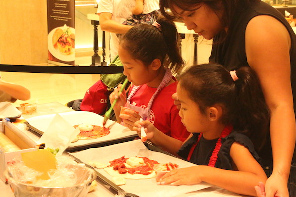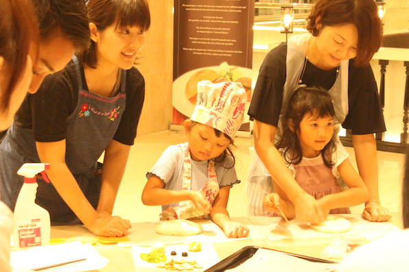 The menu was Piggy Pizza. Although pizza cooking was the first time for many participants, all cooked cute piggy pizza with ABC instructors’ guide. In addition, our school sponsor “HARADA Tea Sales” kindly served Japanese tea to the event.