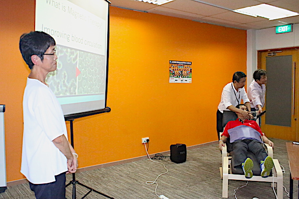 Albirex Singapore Pte Ltd and partner, Sokenmedical Co., Ltd, held a presentation ceremony at the Yuhua Community Club today. Albirex and Sokenmedical donated 3 electrical magnetic therapy beds and 3 portable electrical magnetic devices, Soken-Relax to Albirex's Community Partner, Yuhua Community Club on 6 July 2018 (Friday). These devices uses electrical magnetic fields to improve blood circulation and to release muscle stiffness.