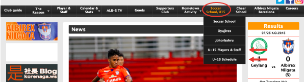 We are pleased to inform you that we have opened 2 web pages for Albirex Niigata FC(S) U-15.