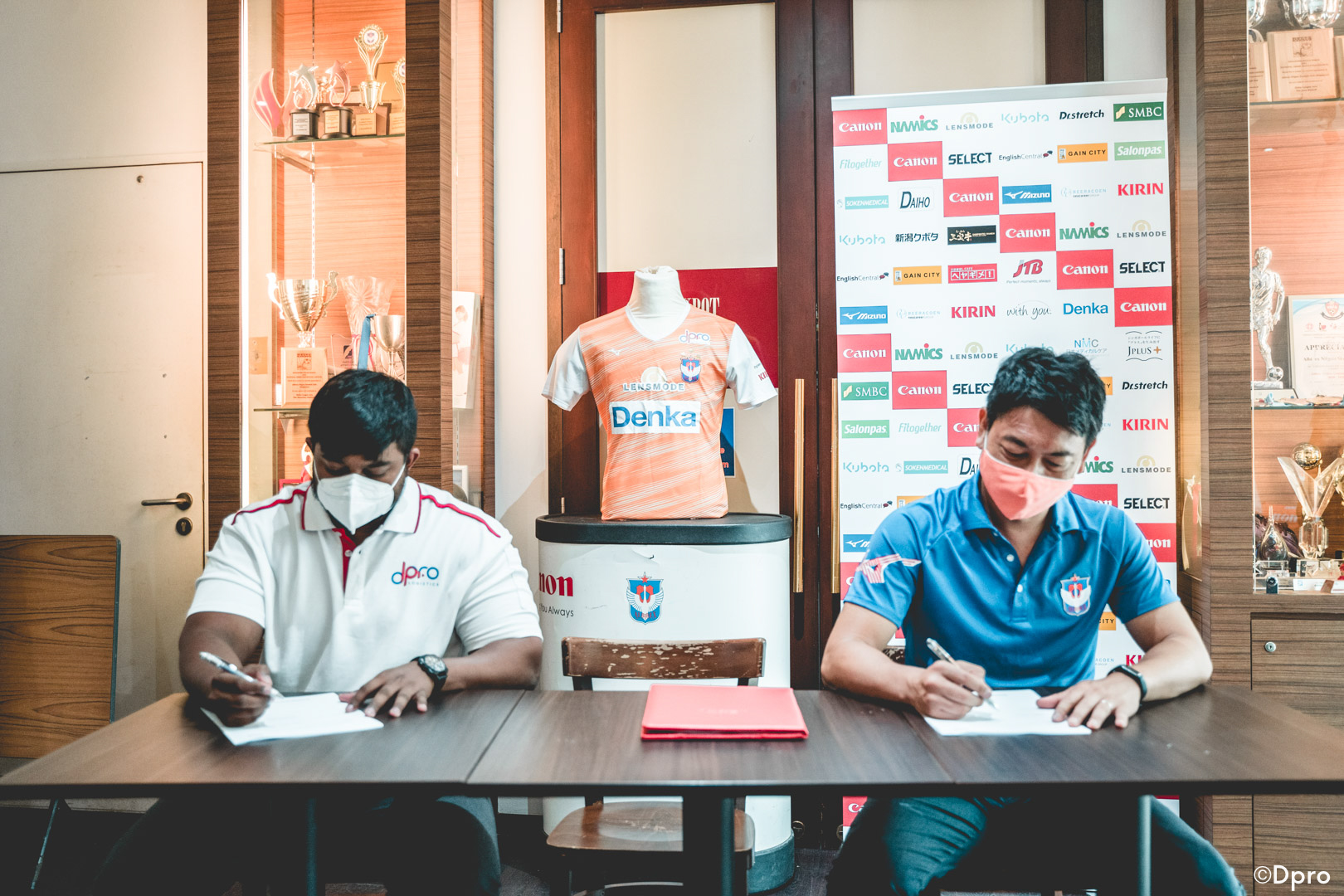 (Left)Dpro Logistics Pte Ltd Mr. R Seenivasan氏(Former National Team Player)(Right)Albirex Niigata FC Singapore CEO Namba Shujiro