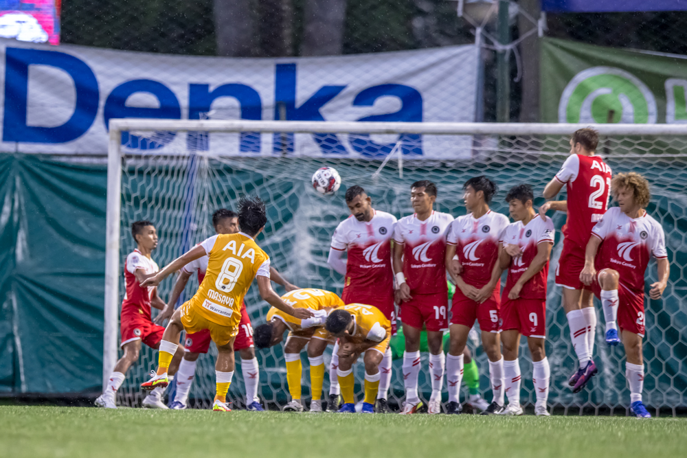 Up stepped Masaya Idetsu, who had missed the last 7 matches due to a thigh injury. He delivered a curling free kick beyond Zharfan's stretching arms. The White Swans have turned around the match and led 1-2 going into the break.