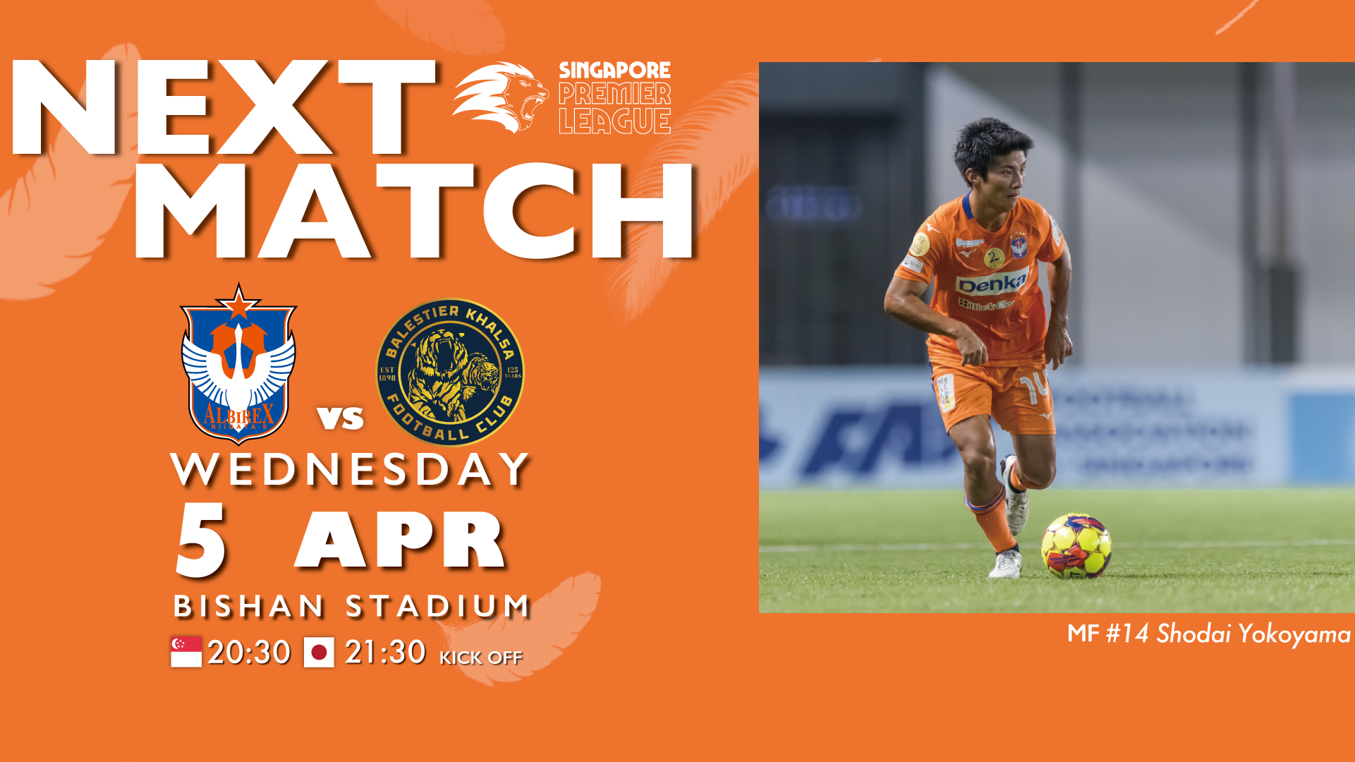 We are pleased to inform you that we will be playing against Balestier Khalsa FC on Wednesday 5th April and the Ticketing Information for the match.