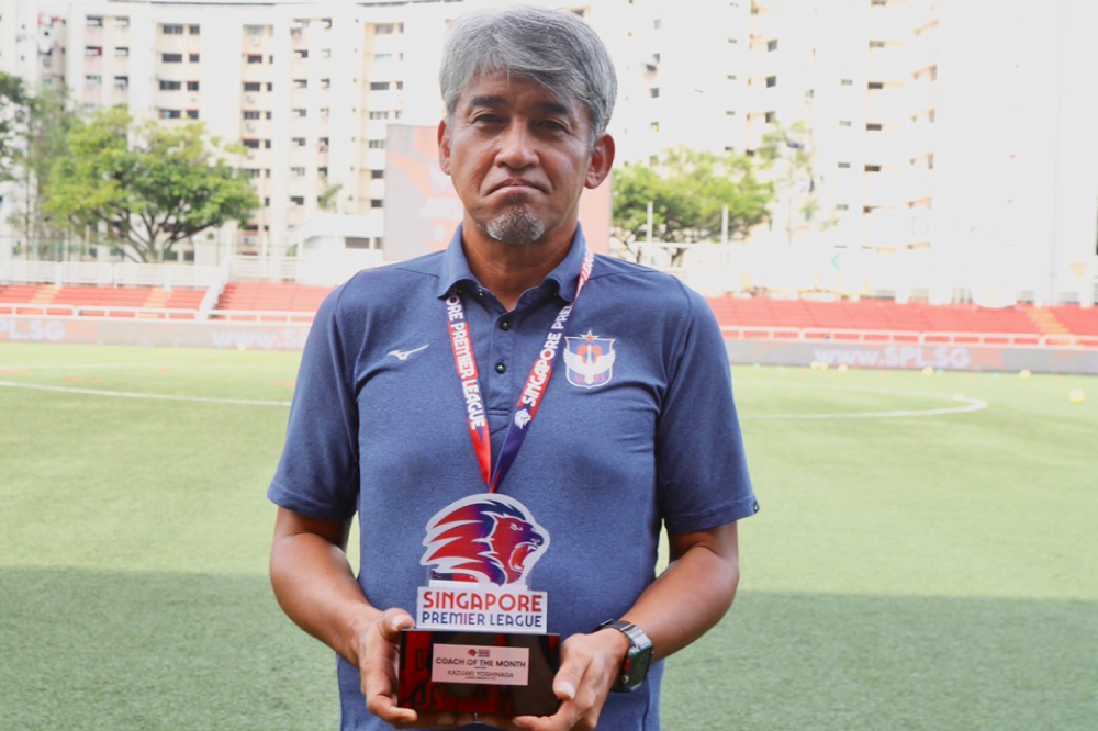 Kazuaki Yoshinaga, the head coach of Albirex, received the AIA Singapore Premier League Outstanding Head Coach of the Month Award for june.