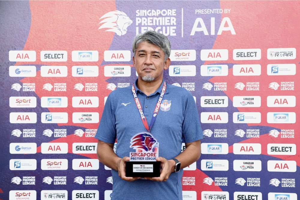 Kazuaki Yoshinaga, the head coach of Albirex, received the AIA Singapore Premier League Outstanding Head Coach of the Month Award for July.
