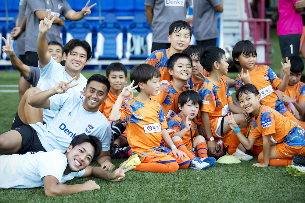 Following the activities, we distributed Sugoyose photo books, courtesy of Sugoyose, our new sponsor for the soccer school this season. The photo book contains players' photos, messages to the school students, and player information, with each player signing autographs and taking photos with the children.