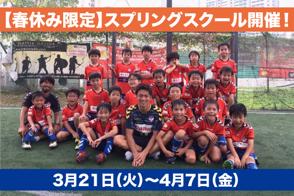 アルビレックスシンガポールサッカースクールでは、3月21日(火)〜4月7日(金)の期間限定でスプリングスクールを開催いたしますので下記の通りお知らせいたします。