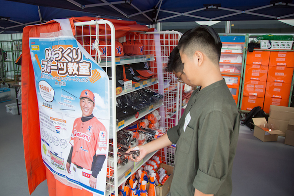 野球のグッズに興味津々の2人