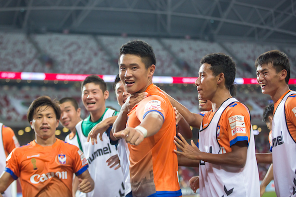 そして終了のホイッスル。一度は同点に追いつかれ、苦しい時間帯もあったが全員で戦い抜き、終了間際のゴールで2−1の勝利!アルビSはシンガポールプレミアリーグ開幕戦を白星で飾るとともに、コミュニティーシールド3連覇。前人未到の3年連続全タイトル制覇に向けて幸先のいいスタートとなった。