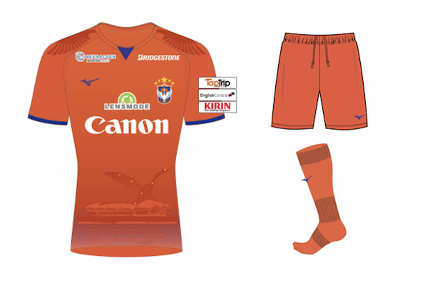 新たにユニフォームパートナーとなったMIZUNOブランドのユニフォームで、昨年よりもやや赤みの強い鮮やかなオレンジが特徴。シャツ、パンツ、ソックスすべて同一色でシンプルなデザインとなっております。