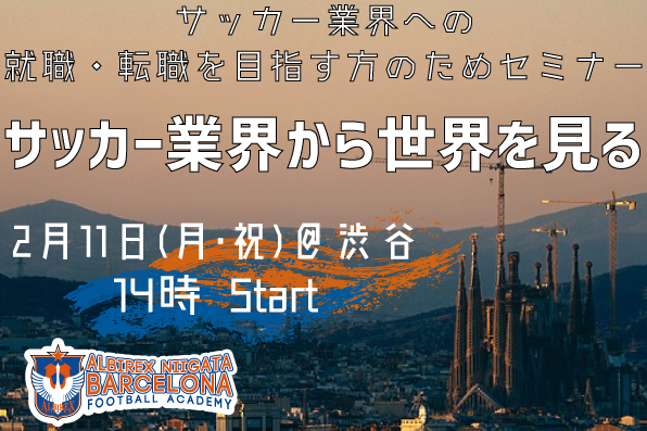 アルビレックス新潟シンガポールが運営母体となり、スペイン・バルセロナにて提供する「サッカーを仕事にする」ためのプログラム、アルビレックス新潟バルセロナ フットボールアカデミーでは【サッカー業界から世界を見る 〜世界で戦うサッカー人へ〜】を開催いたします。