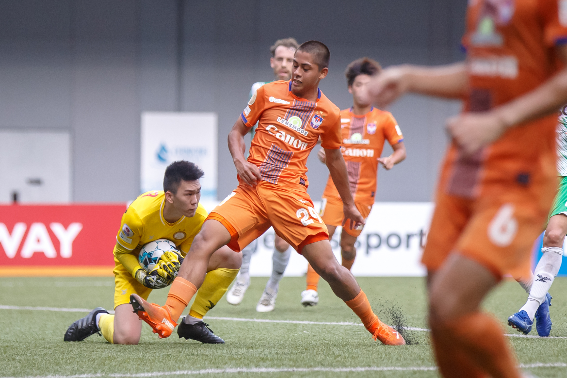 さらに18分。右サイドで谷口選手、ユエン選手が時間を作り、手塚選手が左サイドへと大きく展開します。これに走り込んだ常磐選手がダイレクトで折り返すと、ニッキー選手が足を伸ばしますが、一歩間に合いません。ゴールとはなりませんでしたが、流れるような攻撃で相手DF陣を翻弄します。