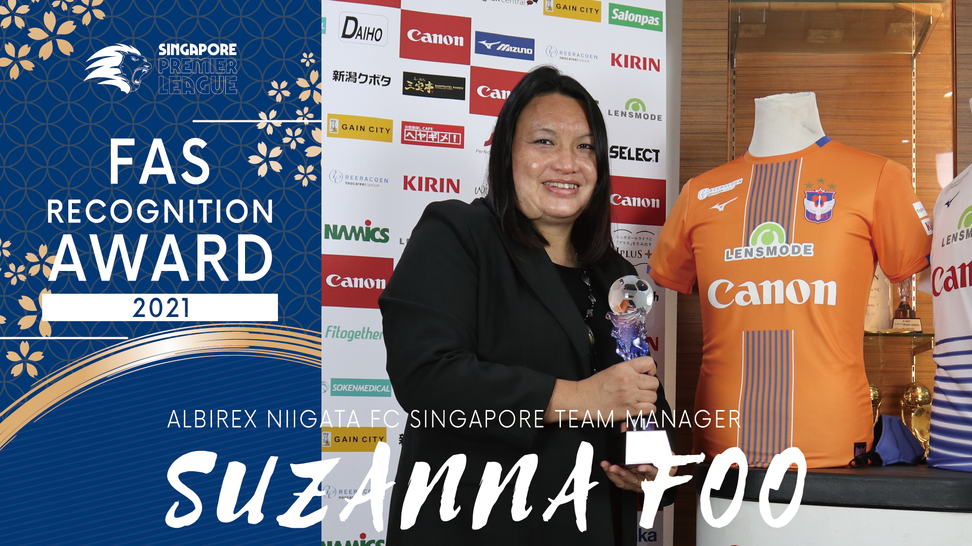 この度、特別賞を受賞することができ大変光栄に思います。シンガポールサッカー界に入って25年が経ち、現在はアルビレックス新潟シンガポールという素晴らしいクラブに所属しています。私のキャリアに関わってくれている全ての人に感謝します。ありがとうございました。2021 フェアプレー賞