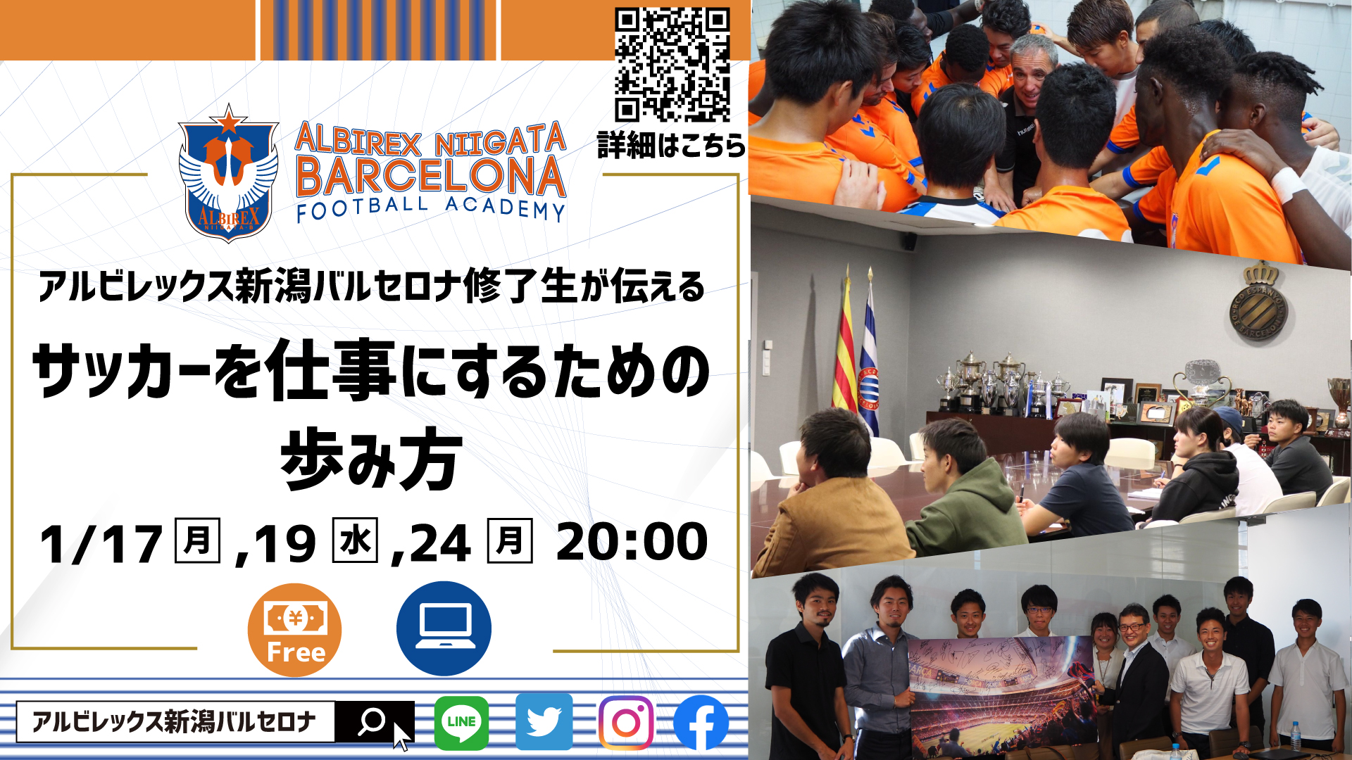 この度、アルビレックス新潟バルセロナ フットボールアカデミーでは、【アルビレックス新潟バルセロナ修了生が伝える『サッカーを仕事にするための歩み方』】を開催いたします。