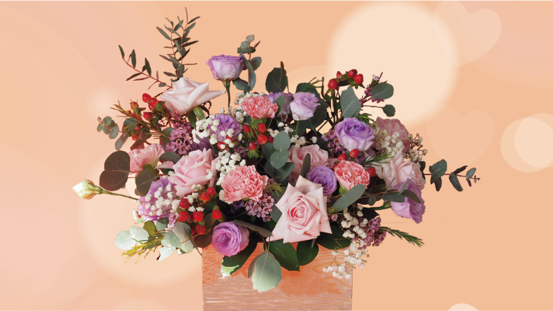 ピンク・パープルのフラワーアレンジメント