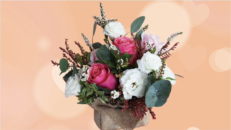ピンクと白のフラワーアレンジメント