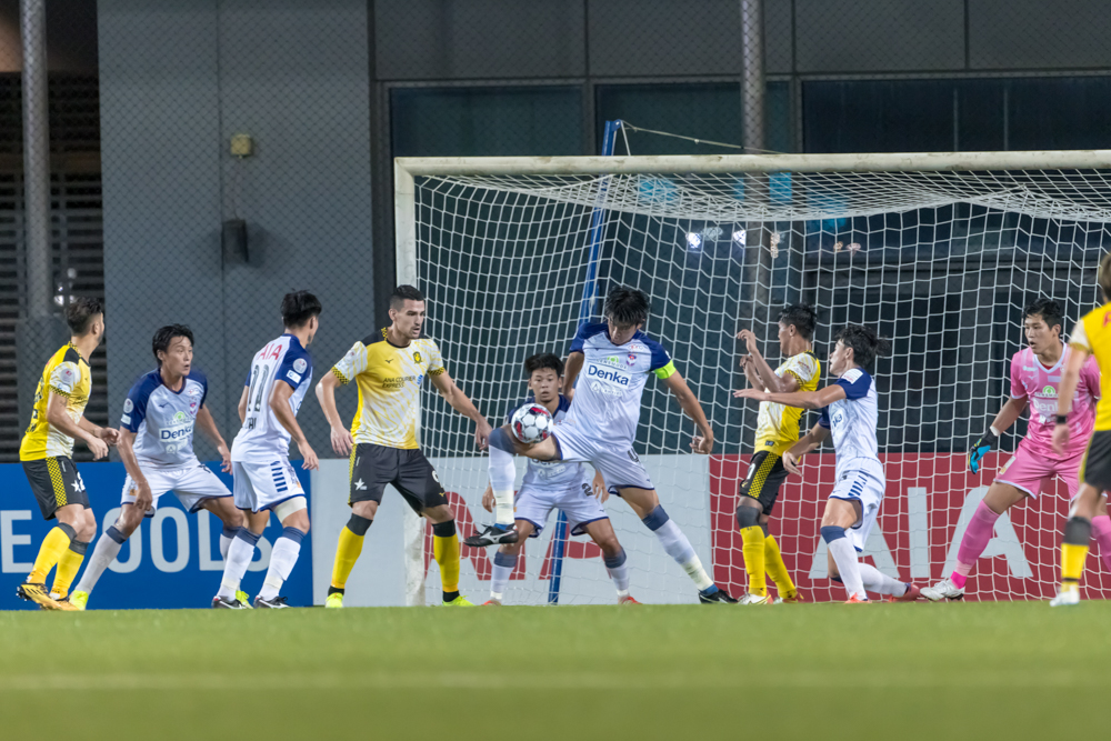 その後は自由に動き回るタンピネスの仲村選手、メメドビッチ選手を捕まえきれずにボールの取りどころを定められないほか、単純なクリアが増えてしまい、なかなかボールを保持することができません。
