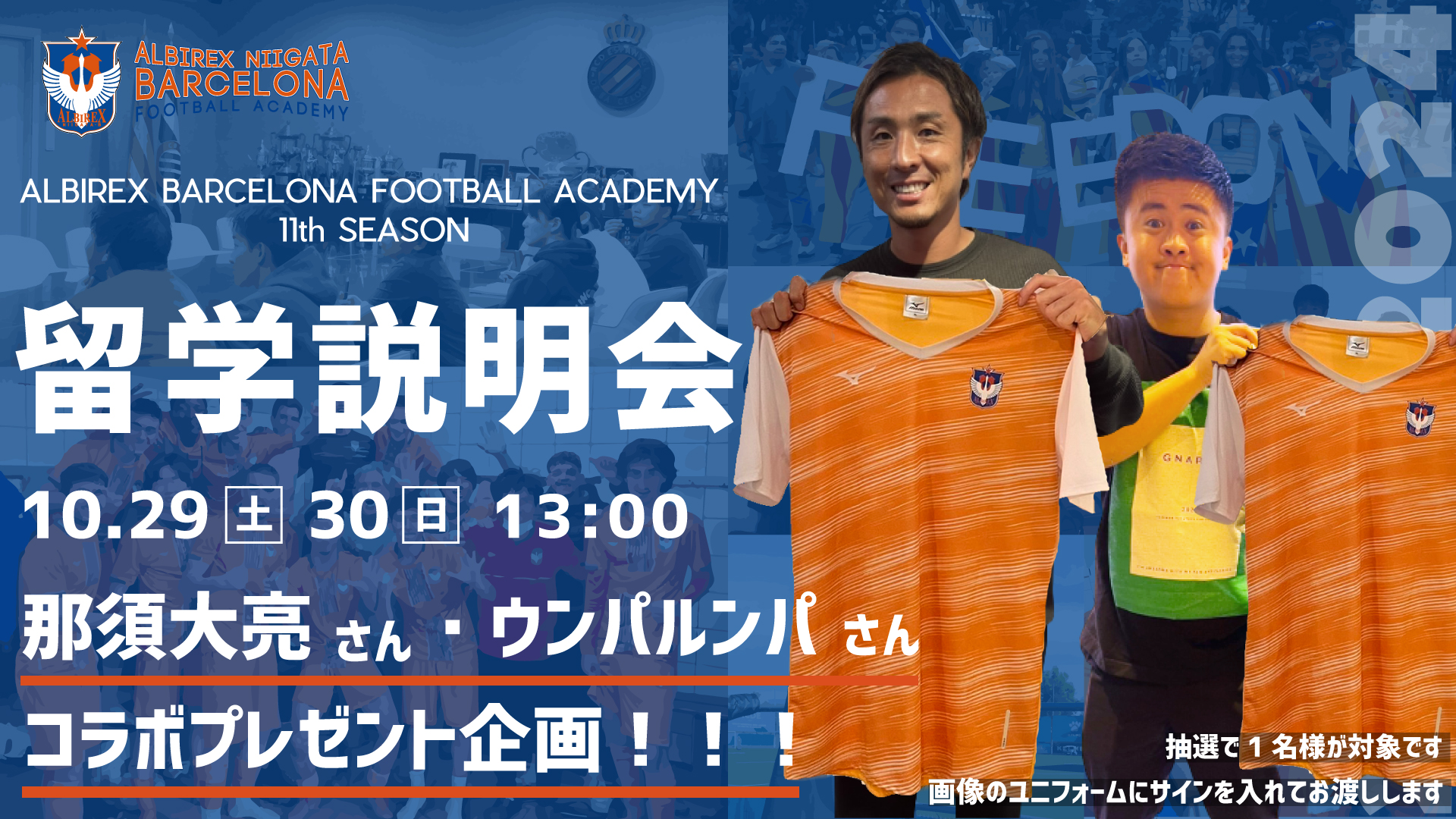 アルビレックス新潟シンガポールが運営母体となり、スペイン・バルセロナにて提供する「世界で堂々と戦う国際人の育成を目指す留学」、アルビレックス新潟バルセロナ フットボールアカデミーの留学説明会を実施いたしますのでお知らせいたします。