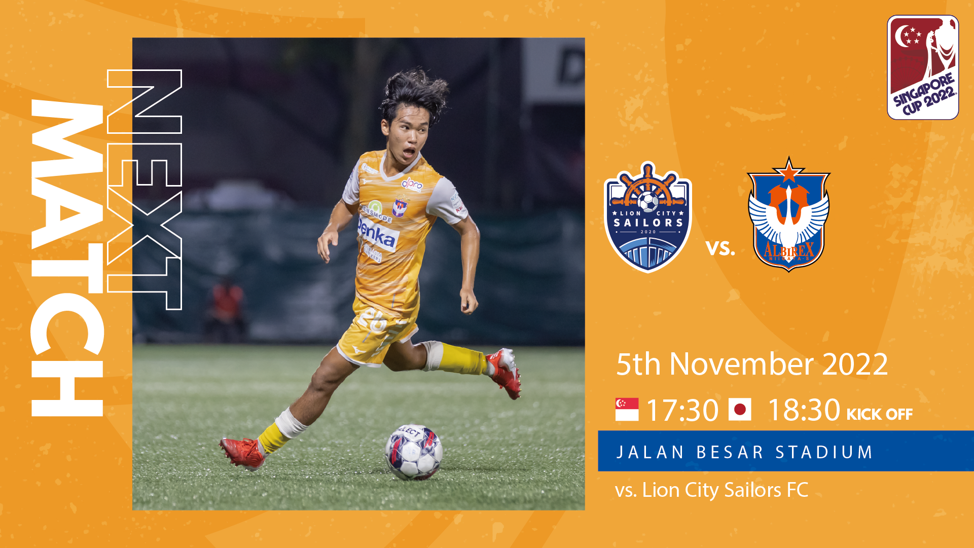 11月5日(土)に開催されますシンガポールカップ 予選 ライオンシティセイラーズFC戦の試合情報および観戦チケット販売についてご案内いたします。