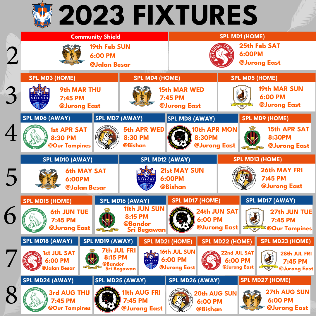 このたび、シンガポールプレミアリーグ(SPL)より2023シーズンの日程が発表されましたのでお知らせいたします。