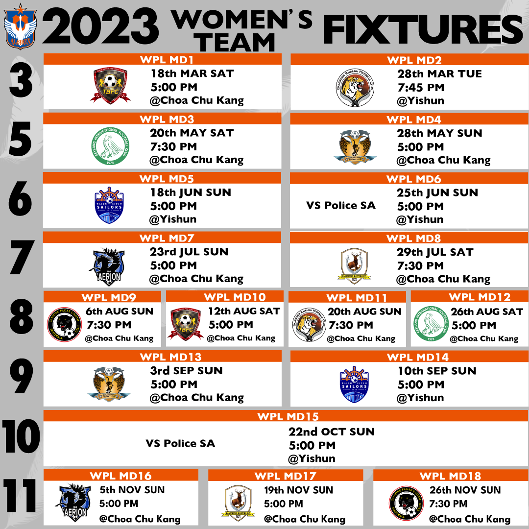 Women's Premier League 2023 日程発表のお知らせ チーム2023年3月3日 Twitter Facebook whatsapp Link Copy いつもアルビレックス新潟シンガポールにあたたかいご声援をいただき、誠にありがとうございます。このたび、Women's Premier League (WPL)より2023シーズンの日程が発表されましたのでお知らせいたします。 Women's Premier League (WPL) 今シーズンも選手への熱い応援をよろしくお願いいたします!スタジアムでお待ちしております! 『チーム』関連記事 2025年12月10日【SG CUP 準決勝 1st レグ】12月14日(日) BGタンピネスローバーズFC戦 (ホーム) 試合情報およびチケット販売のご案内 2025年11月27日新エンブレムグッズ 販売開始! 2025年11月27日クラブ名・エンブレム変更のお知らせ 2025年11月26日【SG CUP 第4戦】11月29日(土) ホウガンユナイテッドFC戦 (アウェイ) 試合情報およびチケット販売のご案内 一覧へ
