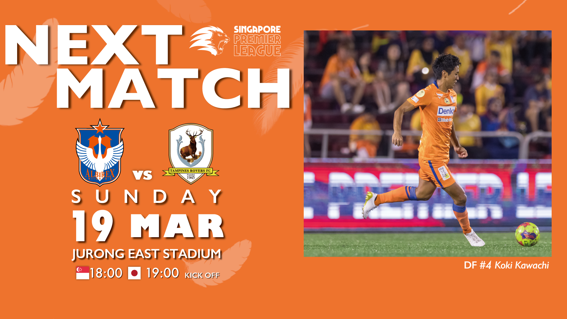 3月19日(日)に開催されますシンガポールプレミアリーグ タンピネスローバーズFC戦の試合情報および観戦チケット販売についてご案内いたします。