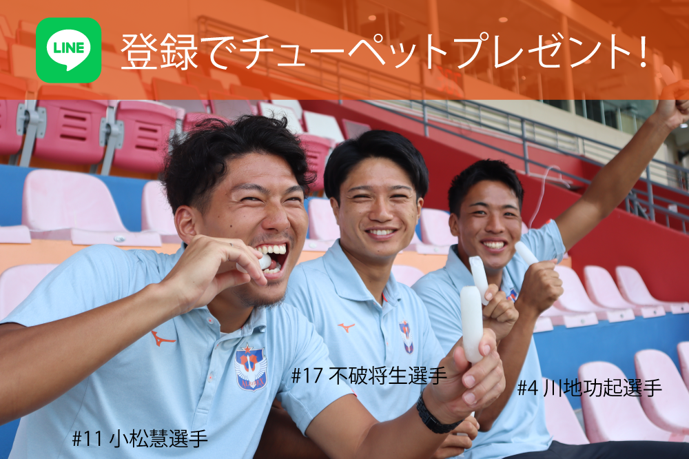 公式ライン登録者様全員にスタンド内グッズ販売コーナーでチューペットをプレゼント!※開場から試合終了後10分後までお引換可能です。