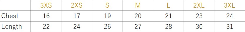 3XS / 2XS / S / M / L / 2XL / 3XL