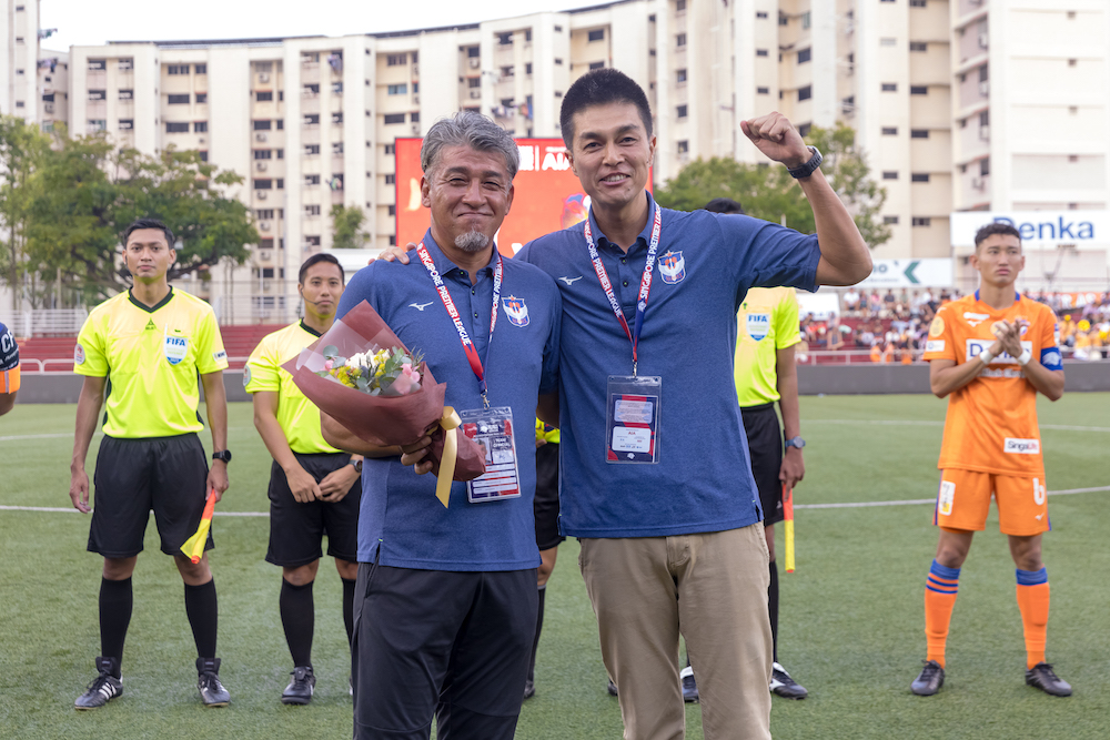 吉永一明監督がシンガポールリーグ100試合の節目を今試合で迎え、試合前には記念セレモニーが行われました。 2017,2018,2022,2023年と指揮をとった全てのシーズンでリーグ優勝を成し遂げ、カップ戦も含めて計10個のタイトルをクラブにもたらしました。