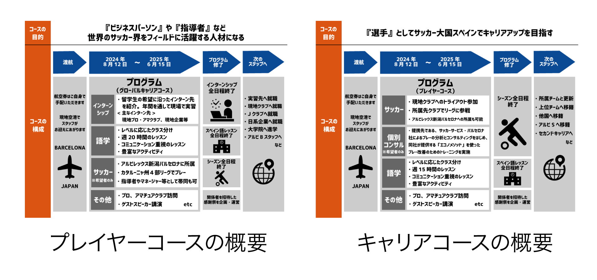 ①ビジネスパーソン、指導者、マネージャーなど、サッカー業界をはじめとする世界で活躍する人材育成を目的とした『グローバルキャリアコース』