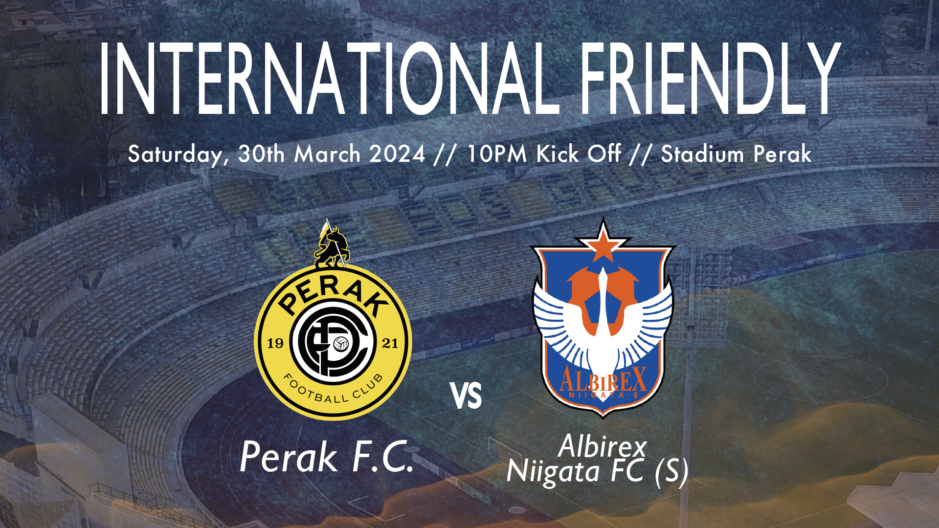 このたび、アルビレックス新潟シンガポールは、マレーシアスーパーリーグに所属する、Perak F.C.と3月30日(土)にマレーシアのStadium Perakにて国際親善試合を行うことになりましたのでお知らせいたします。