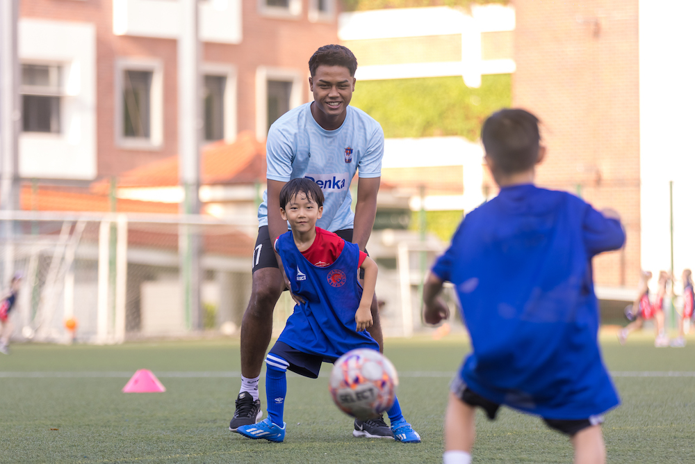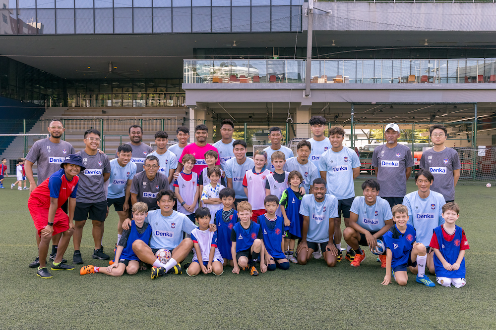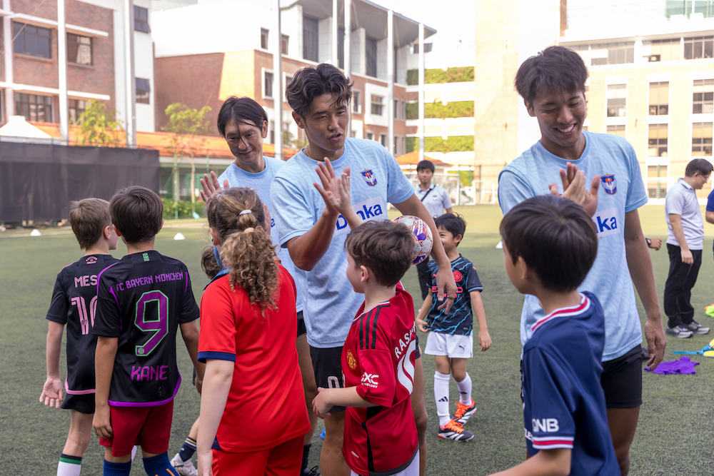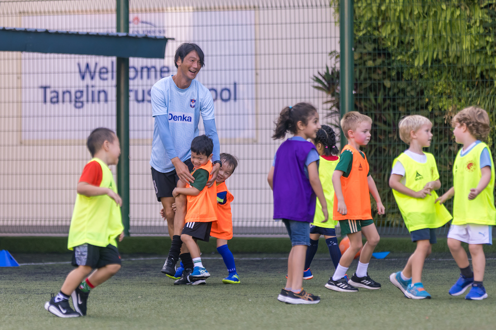 この日は晴天に恵まれたTanglin Trust Schoolの人工芝ピッチで、参加した約50人たちとトップチーム選手たちがサッカーを通じて交流を深めました。