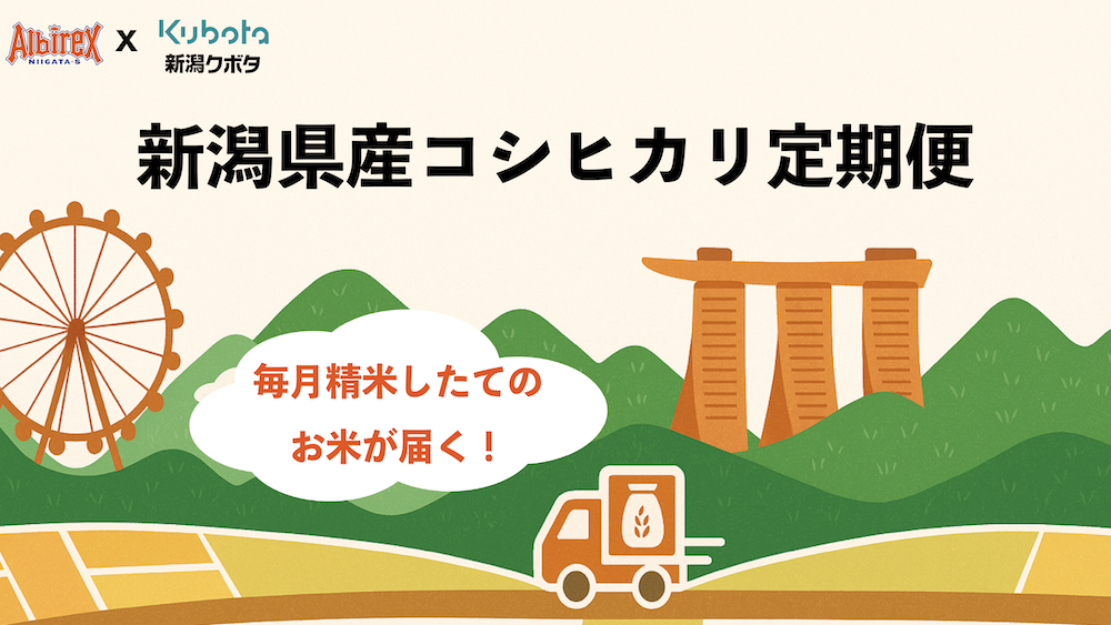 いつもアルビレックス新潟シンガポールにあたたかいご声援をいただきまして、誠にありがとうございます。このたび、皆さまからご好評をいただいております「新潟県産コシヒカリ(アルビ米)」に定期便サービスを新たに開始いたします。