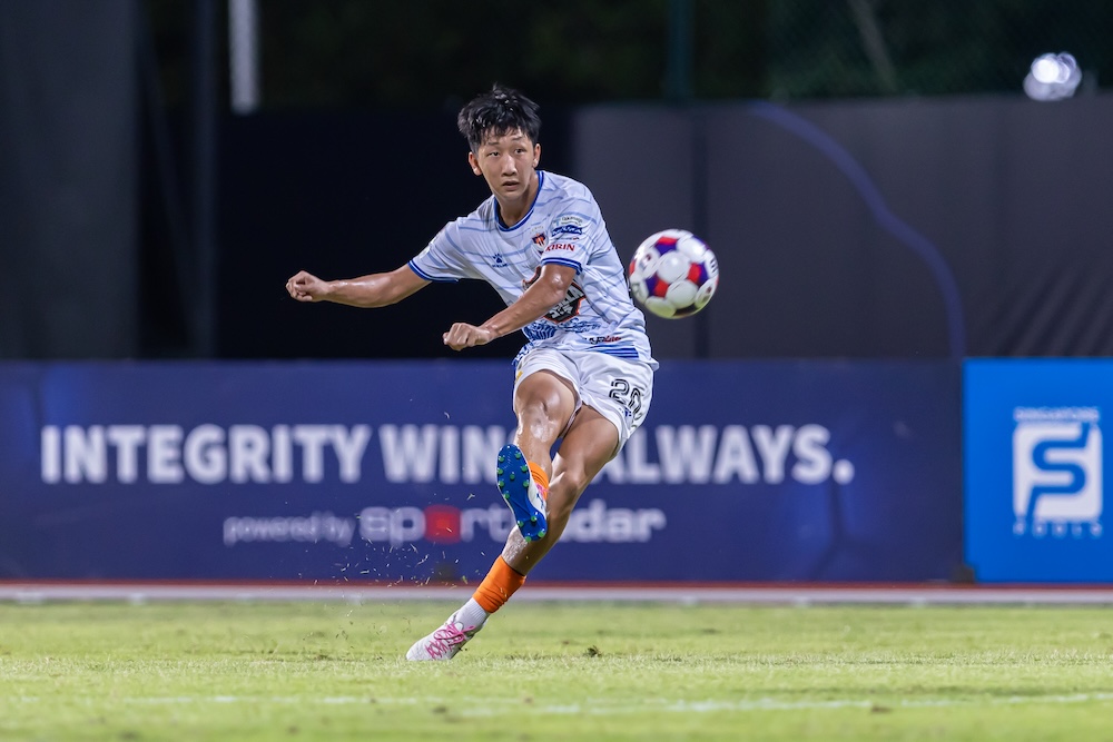 27分には、シム ジュンイェン選手が相手の背後へ抜け出してシュートまで持ち込むものの、惜しくも枠を捉えることができません。