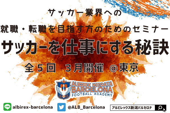 【アルビレックス新潟バルセロナ】『サッカーを仕事にする秘訣』セミナー3月開催のご案内 その他2019年3月5日 -