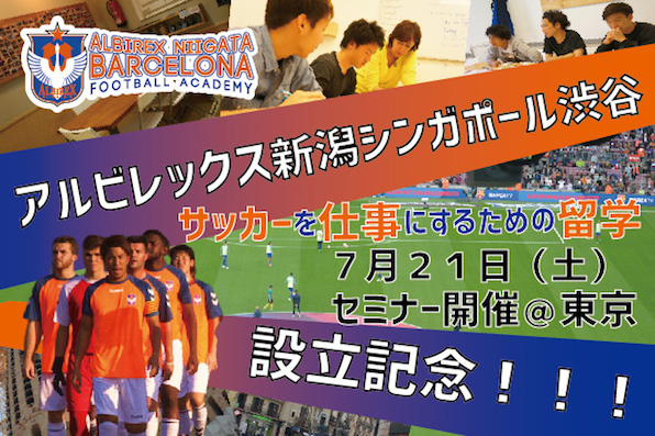 【アルビレックス新潟シンガポール渋谷設立記念『サッカーを仕事にするための留学セミナー』開催のお知らせ】 その他2018年7月13日 -