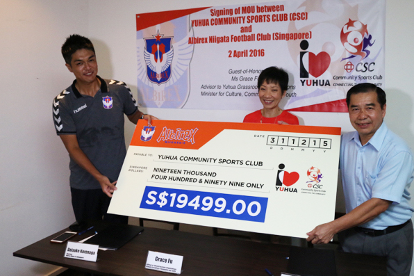 Yuhua Community Sports Club (CSC)との覚書調印式及び寄付金贈呈式開催 レポート2016年4月3日