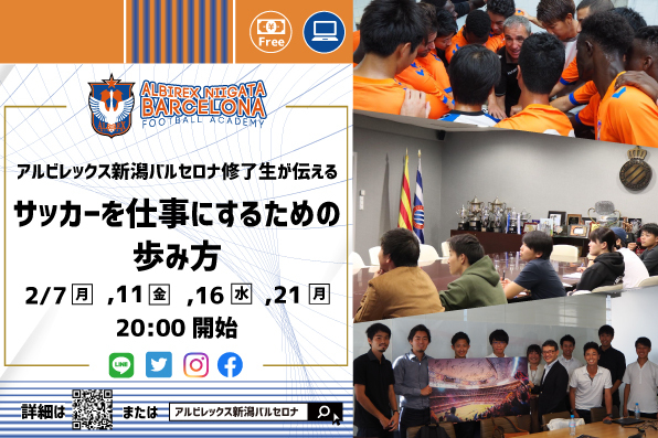 アルビレックス新潟バルセロナ修了生が伝える『サッカーを仕事にするための歩み方』開催のお知らせ イベント2022年1月31日 -